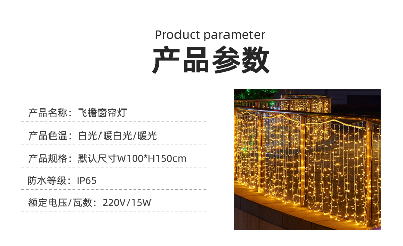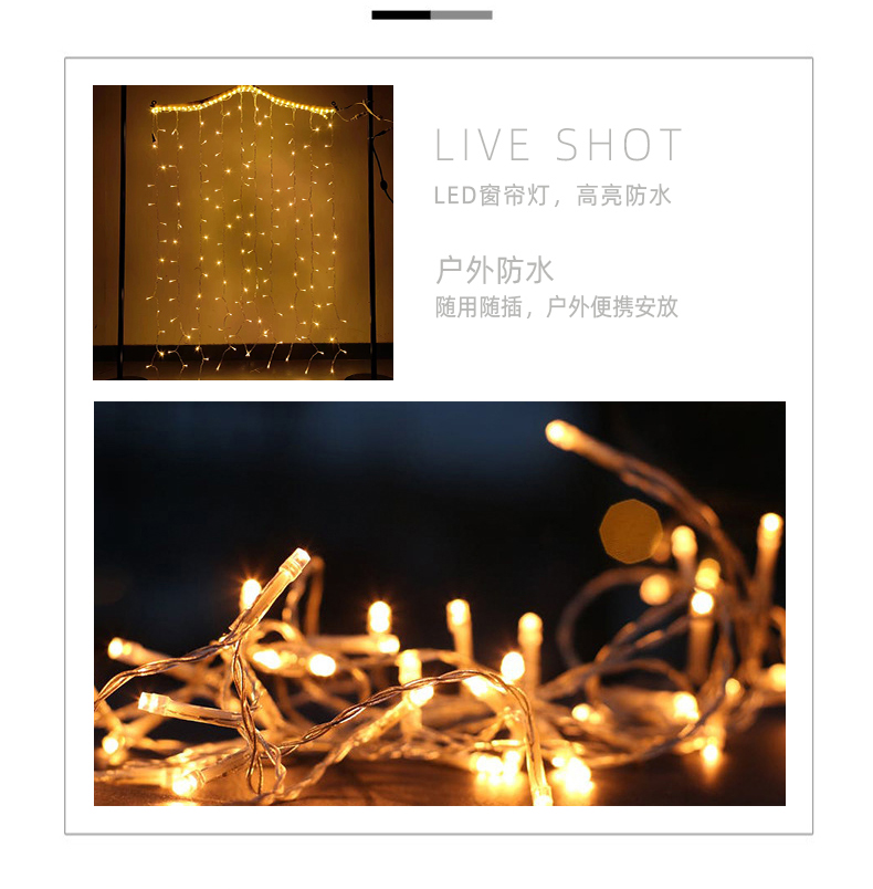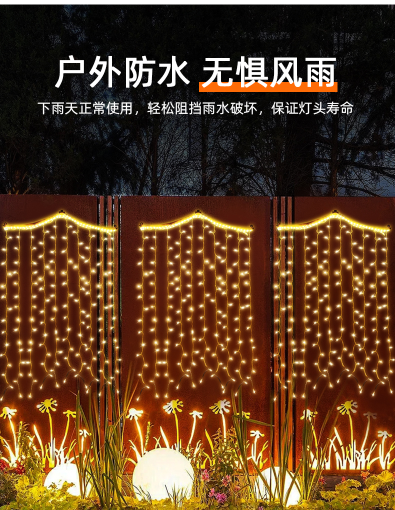 新款窗帘灯户外防水屋檐灯圣诞节日灯氛围装饰灯道路阳台装饰闪灯