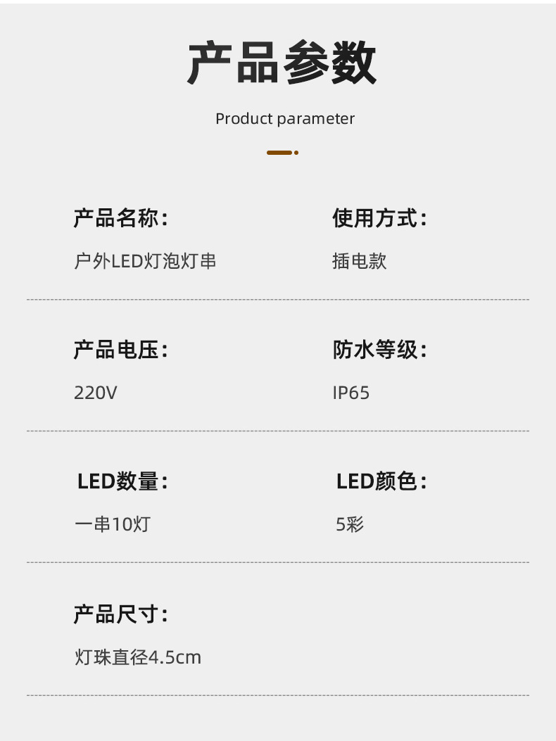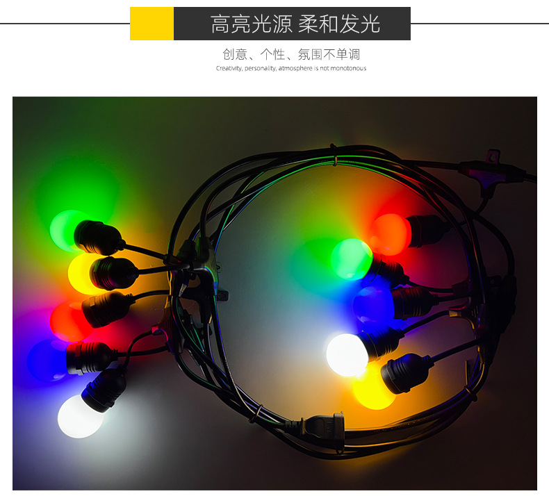 可拆卸E27彩色球泡灯串户外圣诞灯串花园天幕装饰防水LED氛