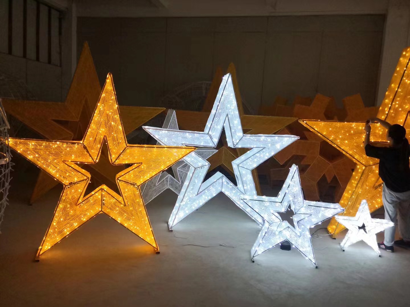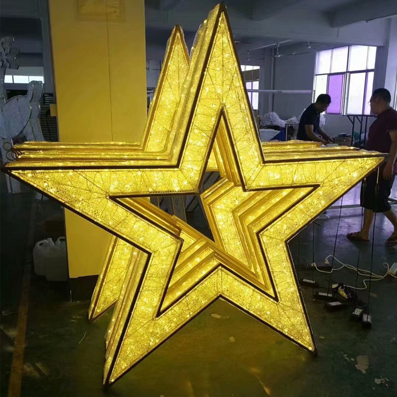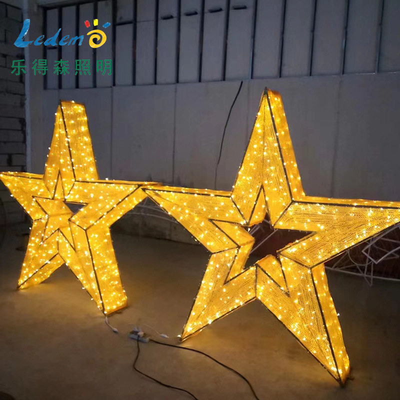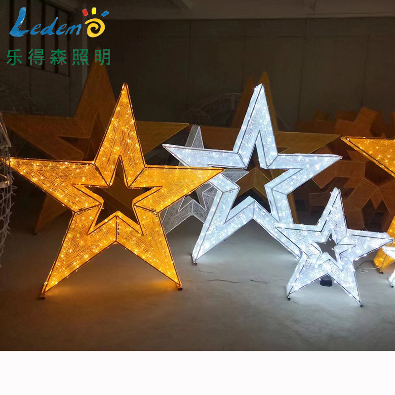LED立体星星造型灯 3D滴胶圣诞铁架灯户外布景亮化五角星夜