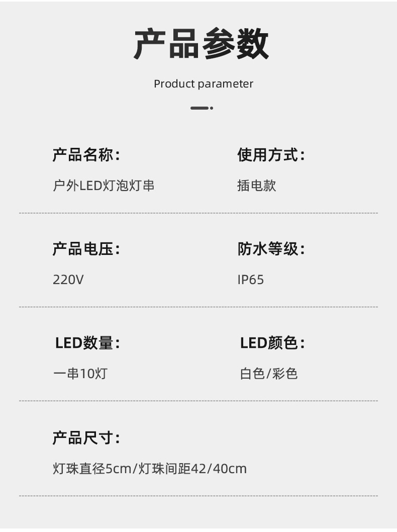 LED圆球装饰灯吊灯露营氛围灯5米10灯户外防水跑马球泡灯庭