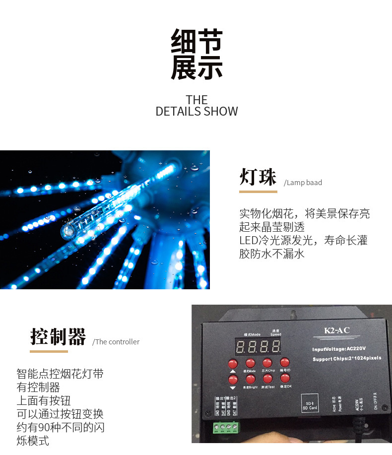 跨境LED烟花灯3D数码流星灯活动引流氛围灯超市装饰灯仿真烟