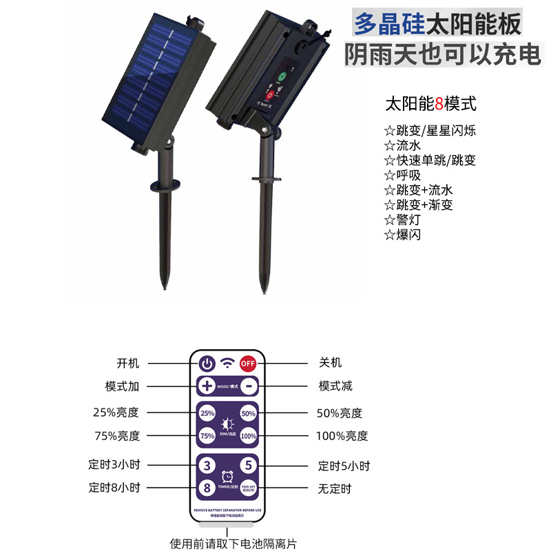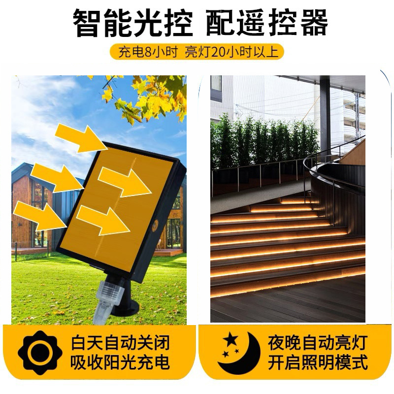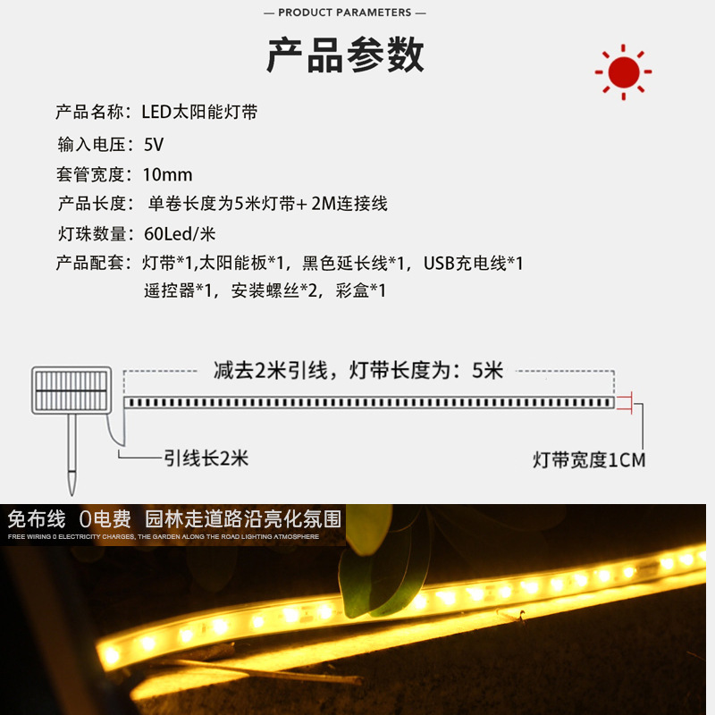 跨境优品套管灯带路灯暖白防水庭院装饰灯节日串灯LED太阳能灯