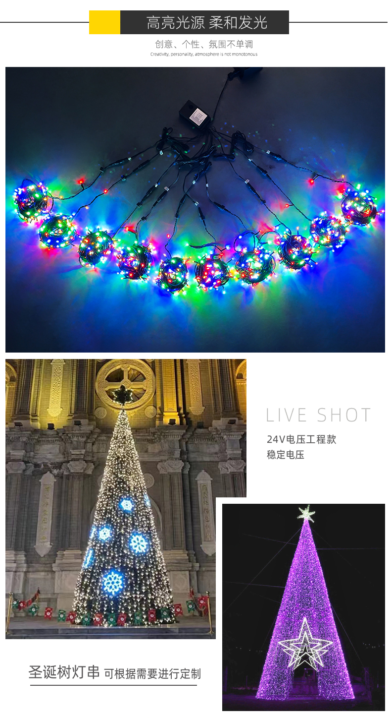 幻彩可编程LED灯串圣诞树灯串七彩流水变色星星装饰灯工程亮化