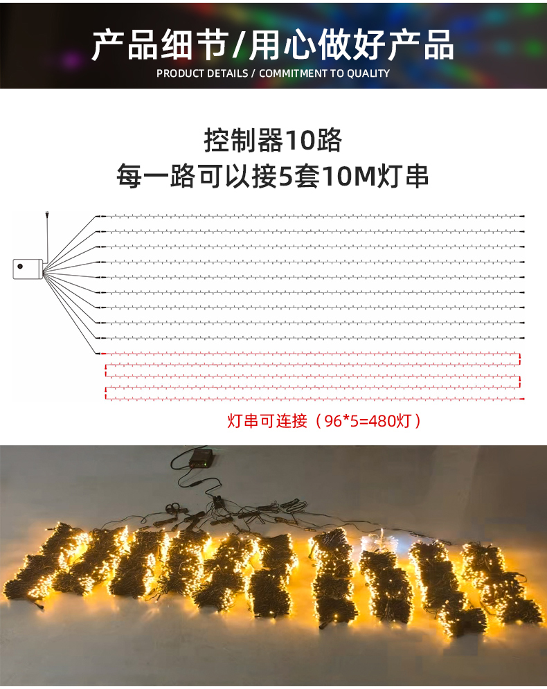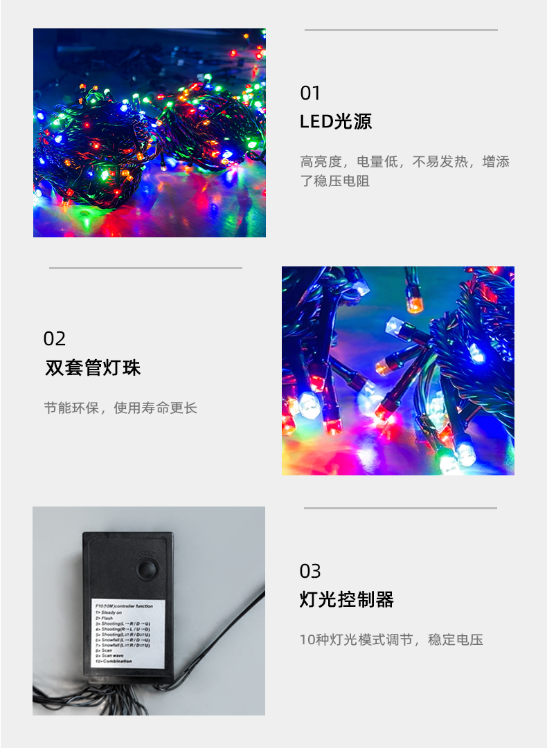 中山市乐得森照明有限公司是一家专业生产LED节日灯、户外装饰灯、圣诞灯的专业家。 我们的产品线包括LED串灯、具有特定图案或设计的LED灯、LED烟花灯、RGB流星雨灯以及为婚礼、聚会、节日和圣诞节设计的景观灯。我们拥有专业的团队,可以帮助客户进行不同主题的光影秀。在不同光影秀项目上拥有丰富的成功经验。