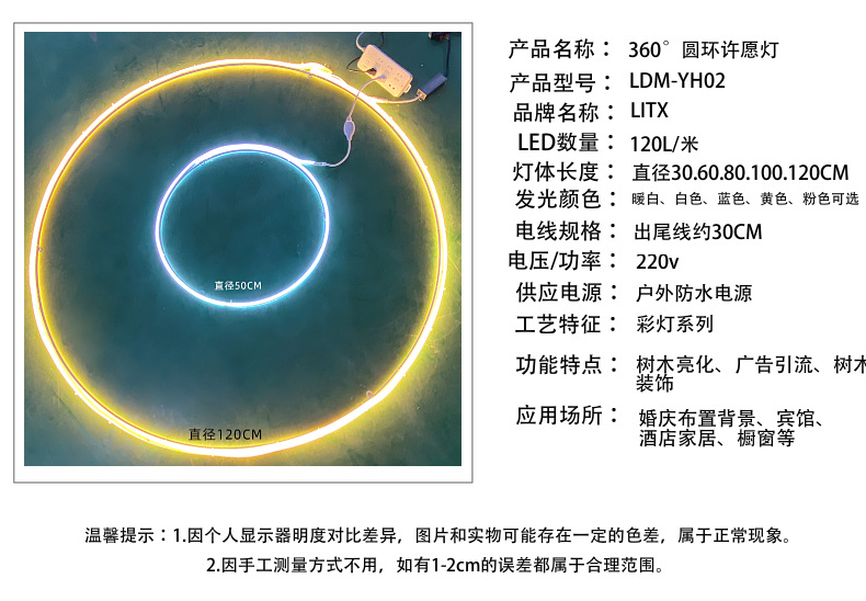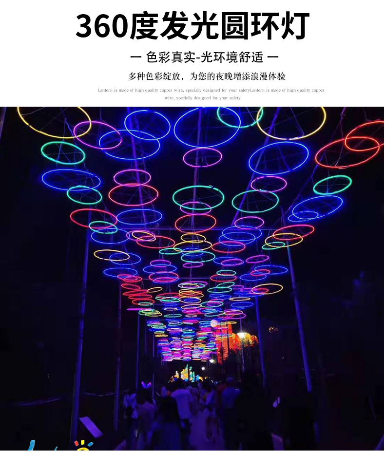 景区亮化树木装饰灯防水圆环灯天花挂饰通道布置大直径氛围圆圈灯