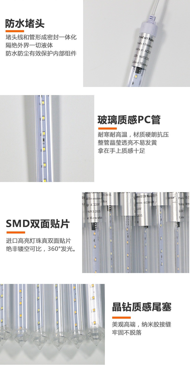 户外灯装饰灯亮化工程防雨水仿流星雨加粗23管节日氛围灯led