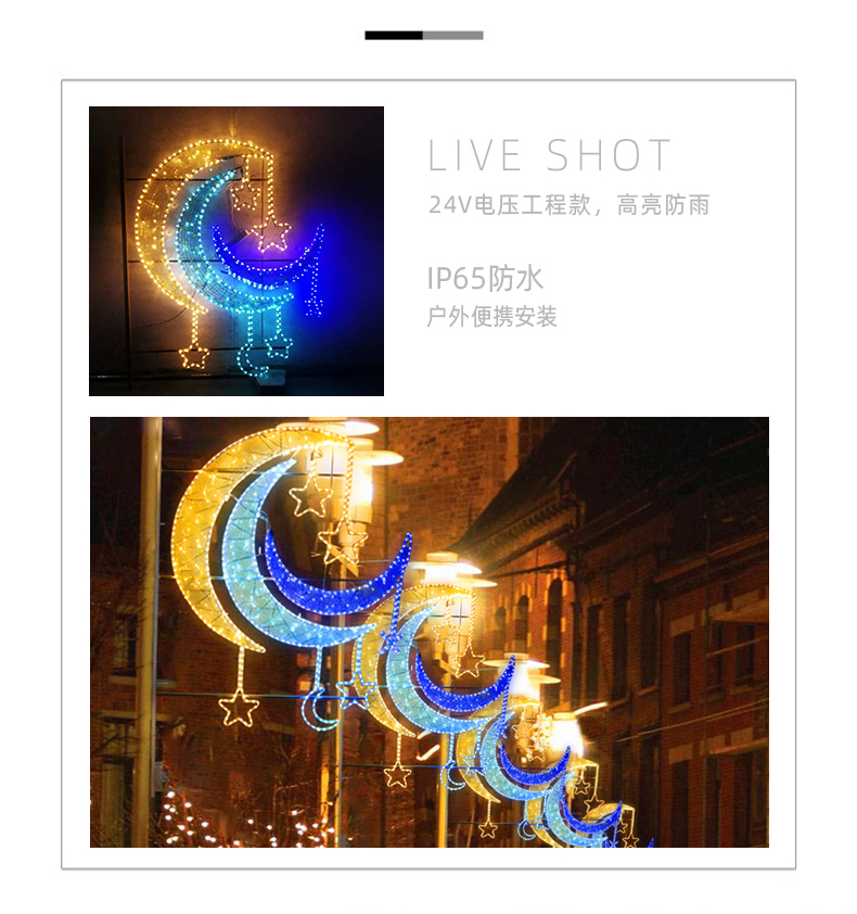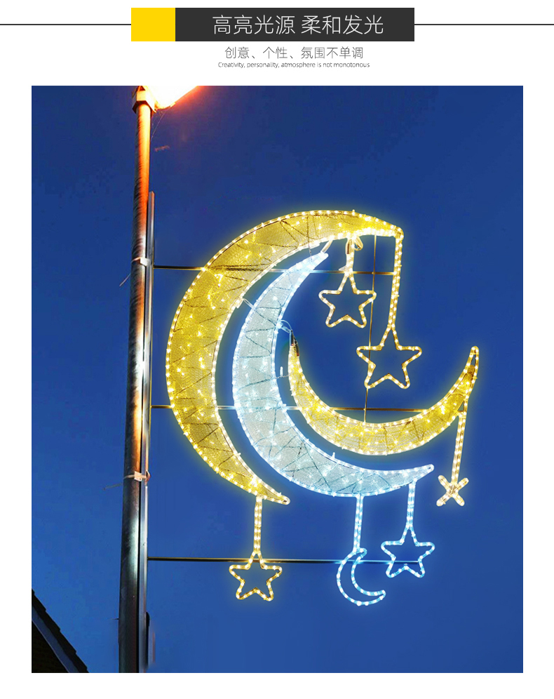定制新款月亮星星款节日氛围布置广场商场树臂款节日