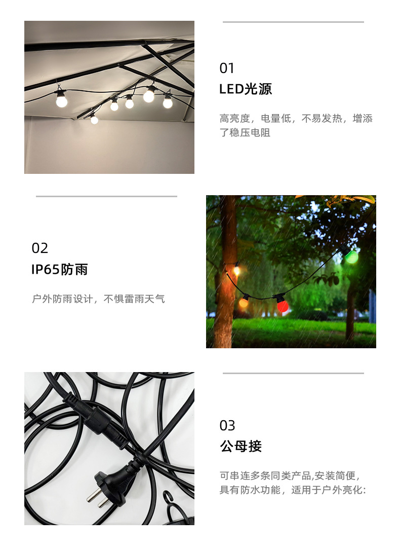 LED圆球装饰灯泡吊灯露营氛围灯10米20灯户外防水高亮满天