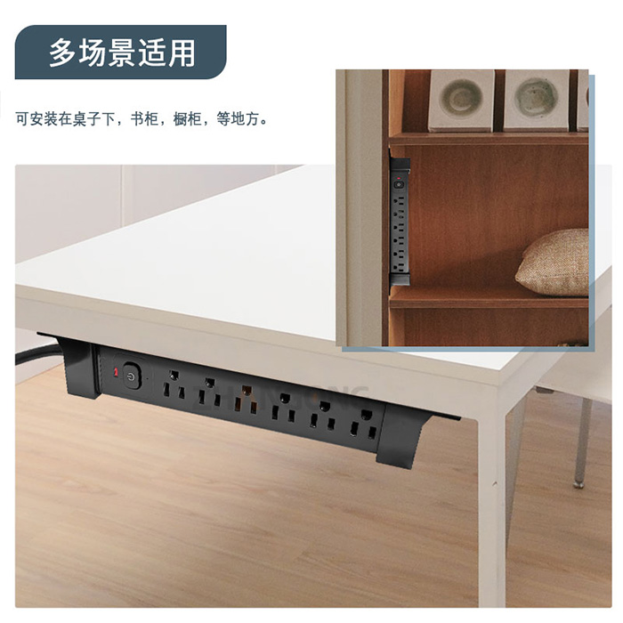 可桌下安装的黑色美标拖线板