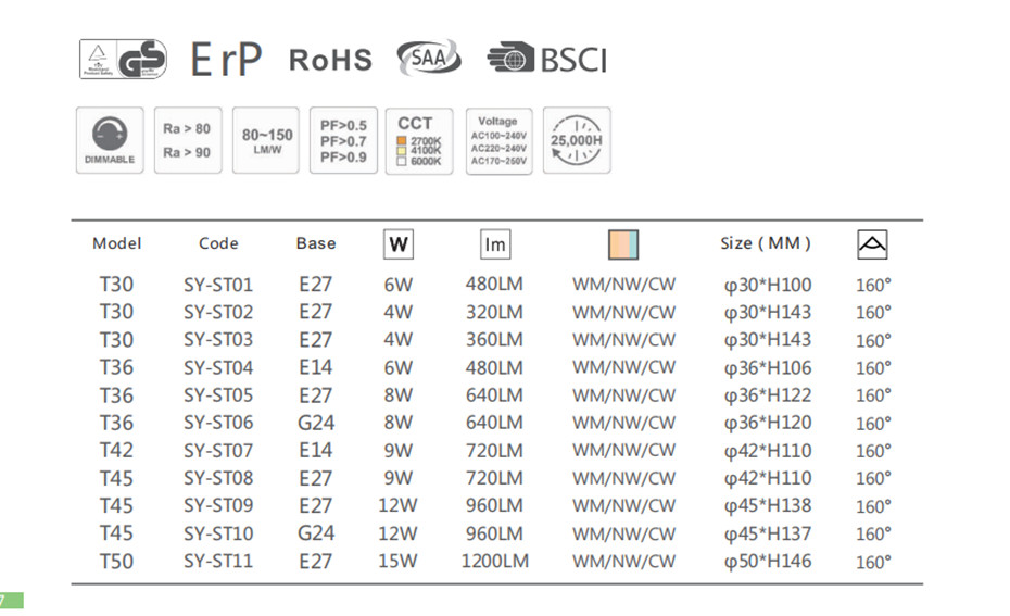 • 色温 (k) 2801-3200K、3201-3800K、3801-4200K、4201-5000K、5001-6500K