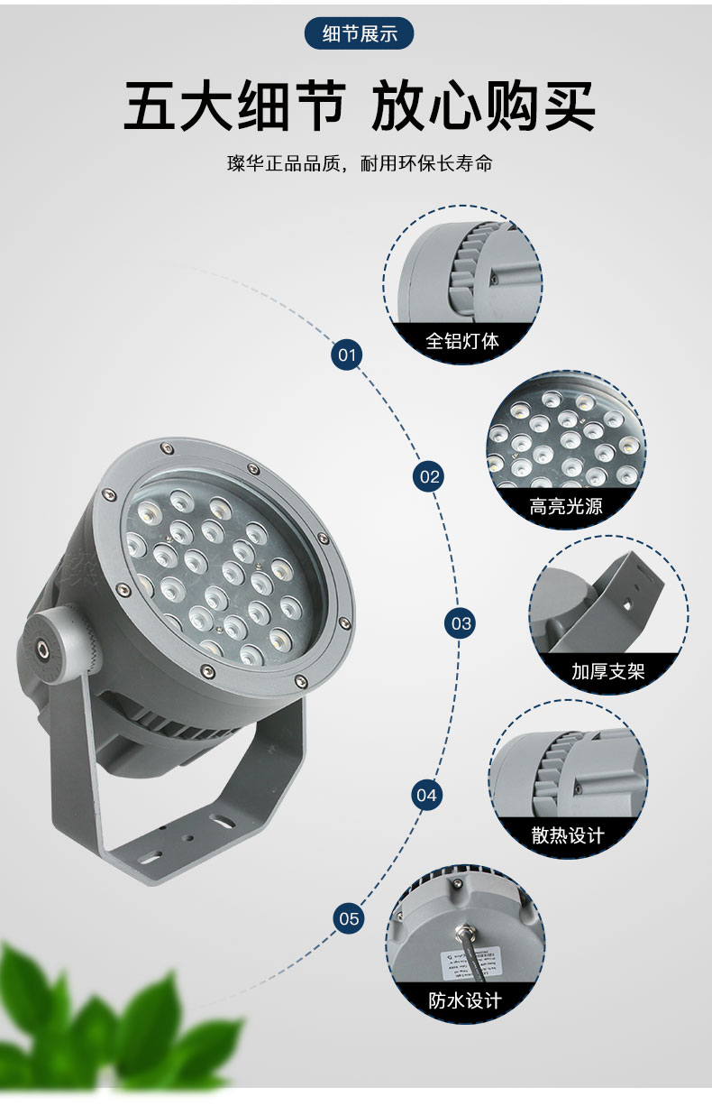 璨华54W防水地插圆形投光灯LED户外草坪花园投射灯