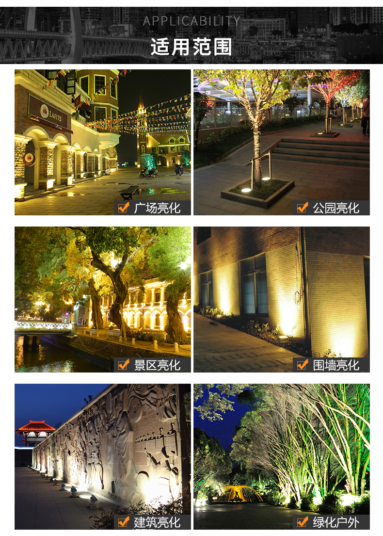• 适用空间 桥梁、绿化景观、外墙、商业街、园林、住宅、广场、其他