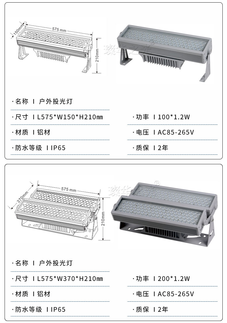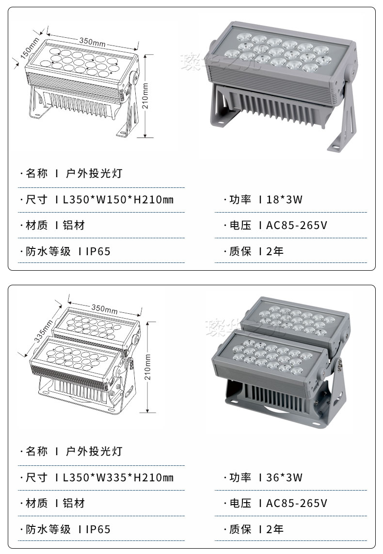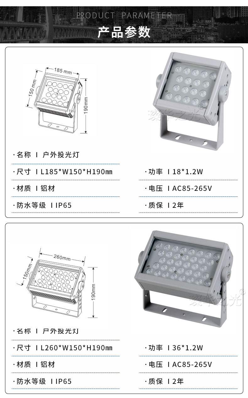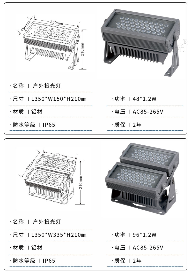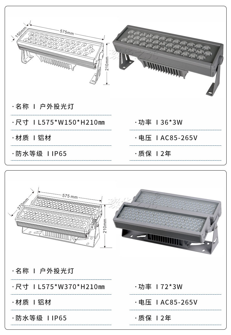 璨华LED大功率投光灯48W方形户外防水酒店外墙投射灯