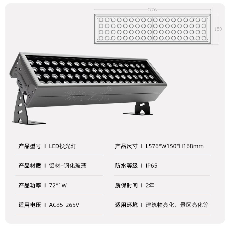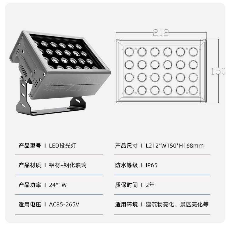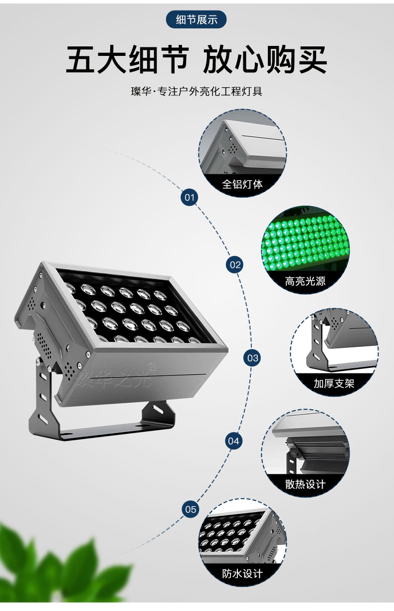 璨华48W方形大功率投光灯户外防水楼体广场庭院草坪照树灯
