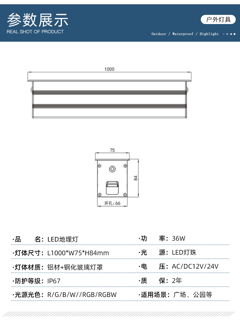 璨华led长条地埋灯台阶走廊过道公园广场嵌入式磨砂地面灯