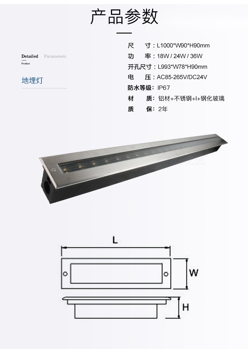 璨华led长条地埋灯嵌入式条形不锈钢广场庭院埋地射灯