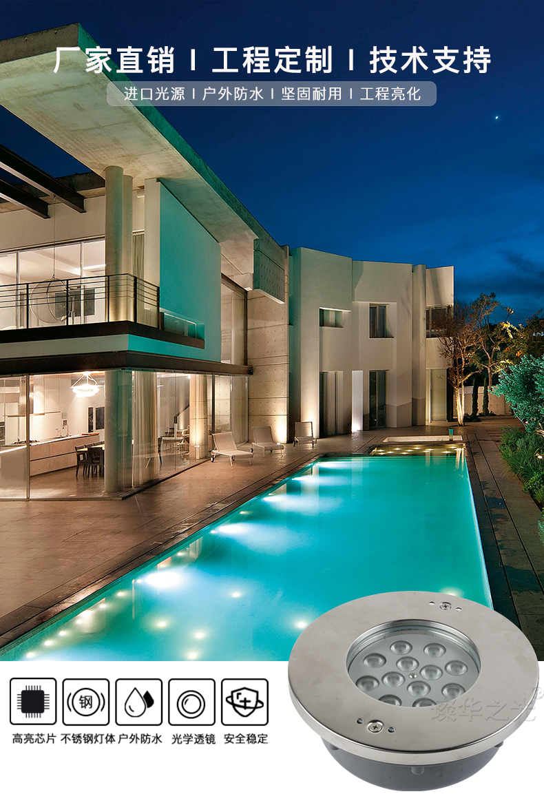 璨华led水下地埋灯12W嵌入式泳池灯不锈钢水池灯