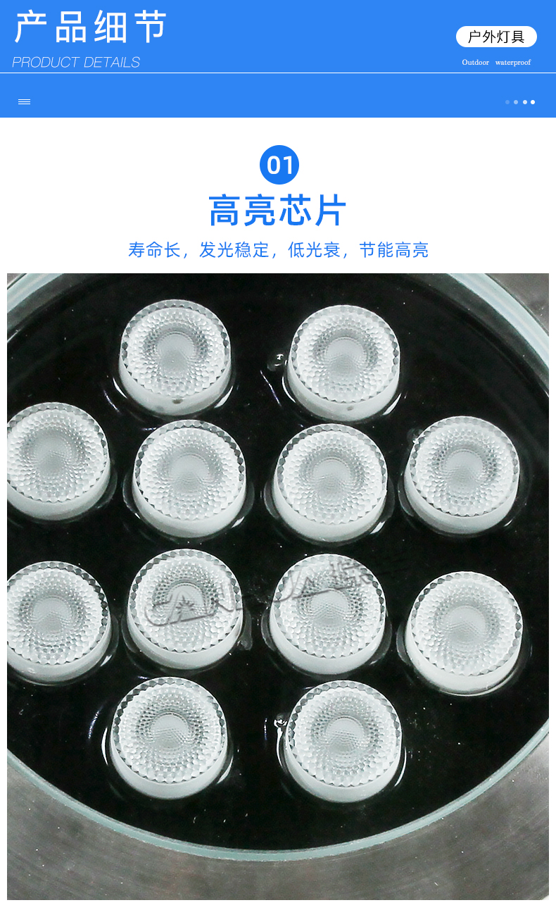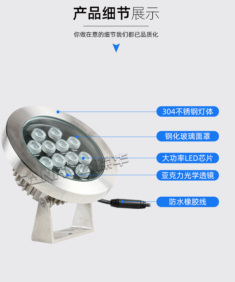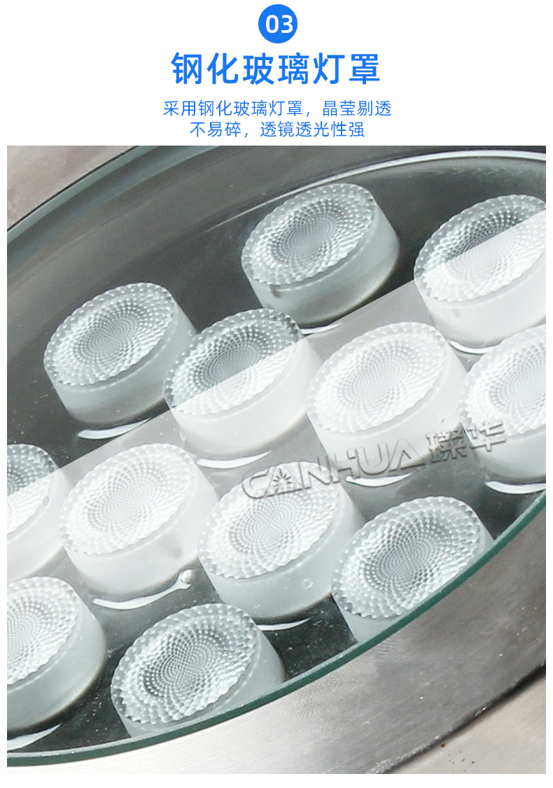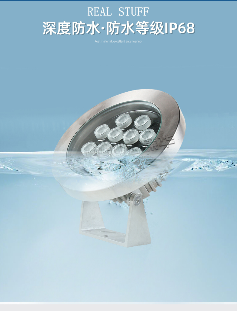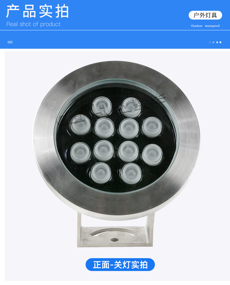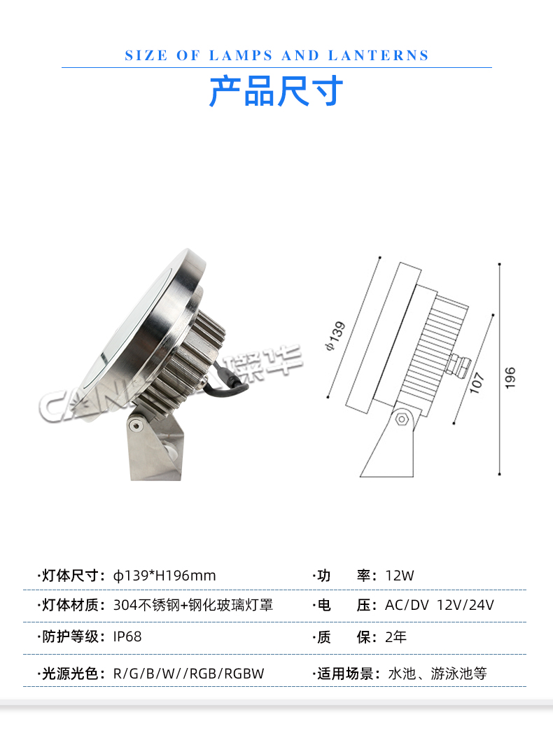 璨华LED不锈钢浇铸水池灯9W/12W喷泉水底射灯
