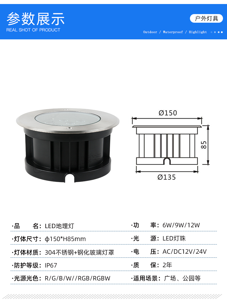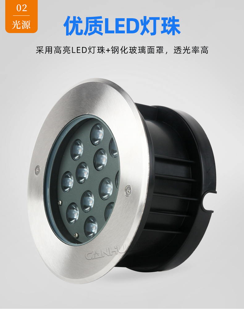 璨华LED圆形地埋灯12W户外公园广场庭院草坪埋地灯