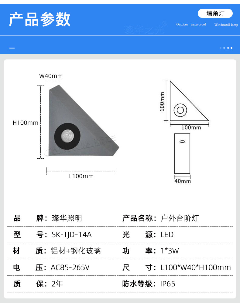 璨华户外防水广场公园台阶明装墙角灯3W台阶灯地面射灯