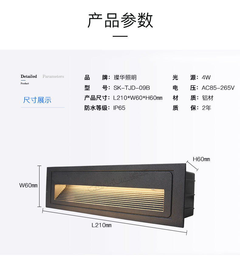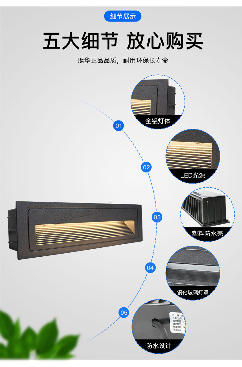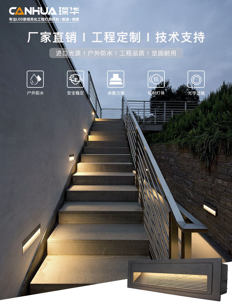 璨华 led地脚灯5W6W户外台阶灯楼梯灯嵌入式过道墙角灯