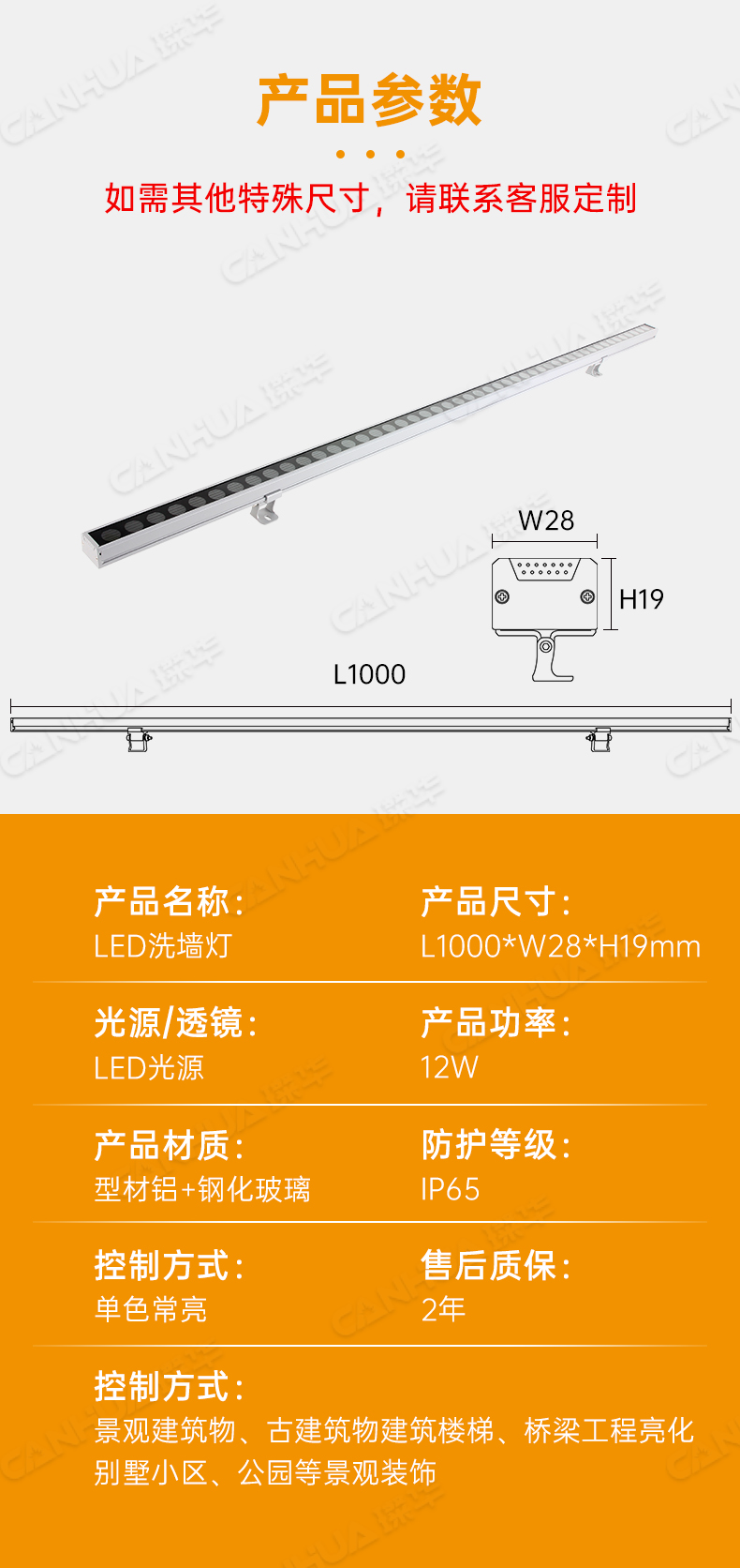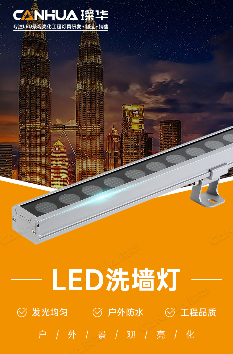 璨华LED小功率洗墙灯12W户外防水楼体亮化格栅线条灯