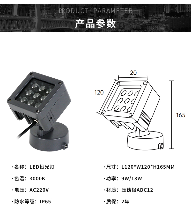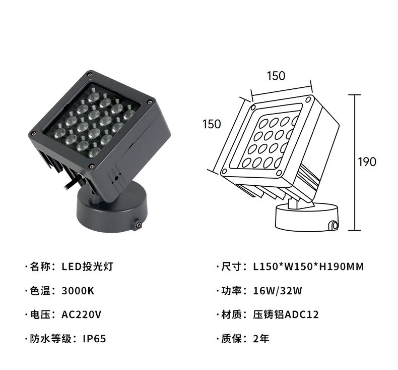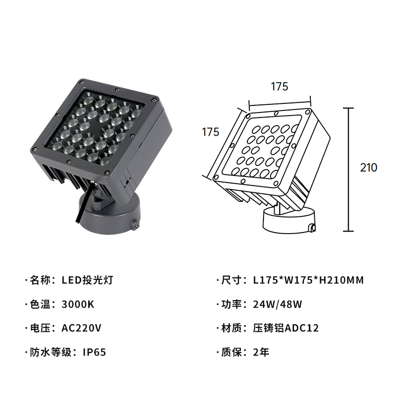 璨华LED户外方形大功率投射灯景观公园庭院灯照树灯