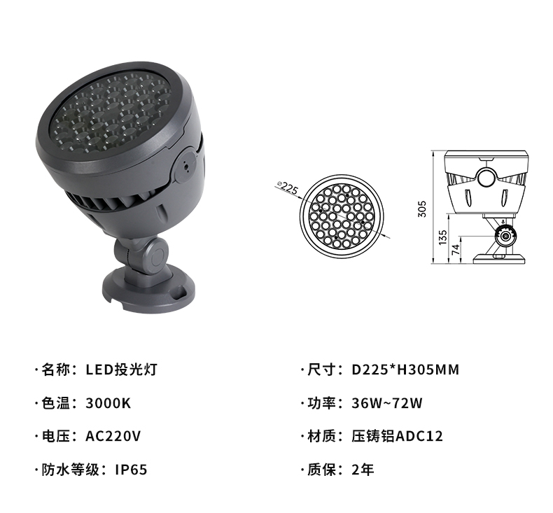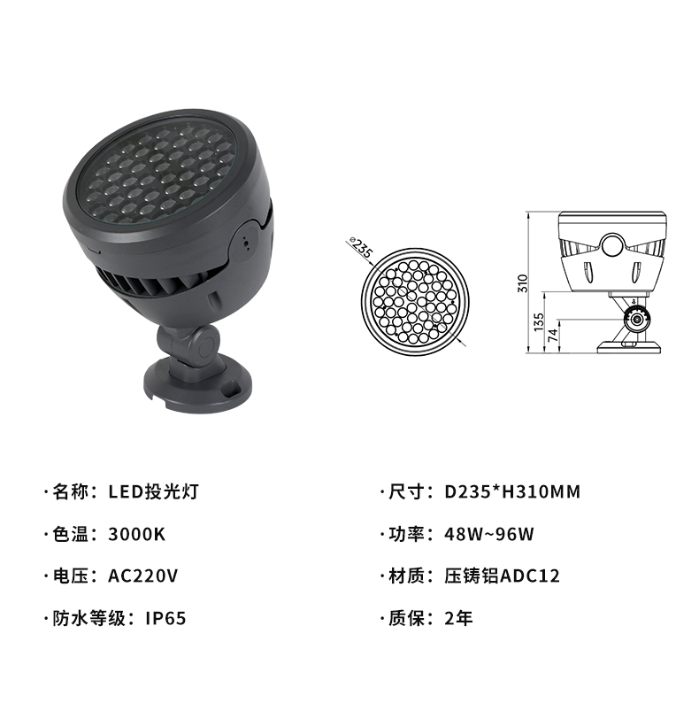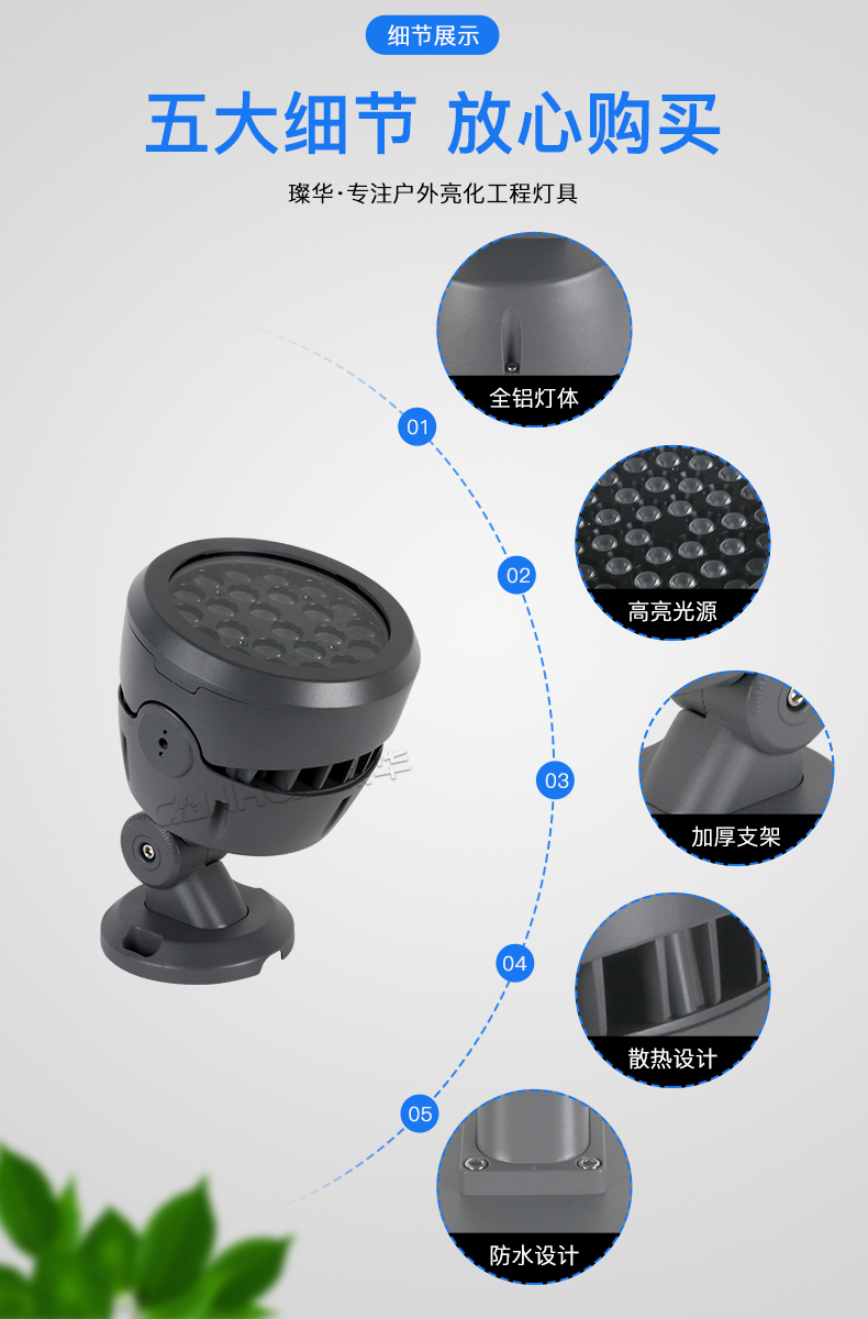 璨华LED高功率投光灯RGBW投射灯景观庭院照树灯抱箍灯