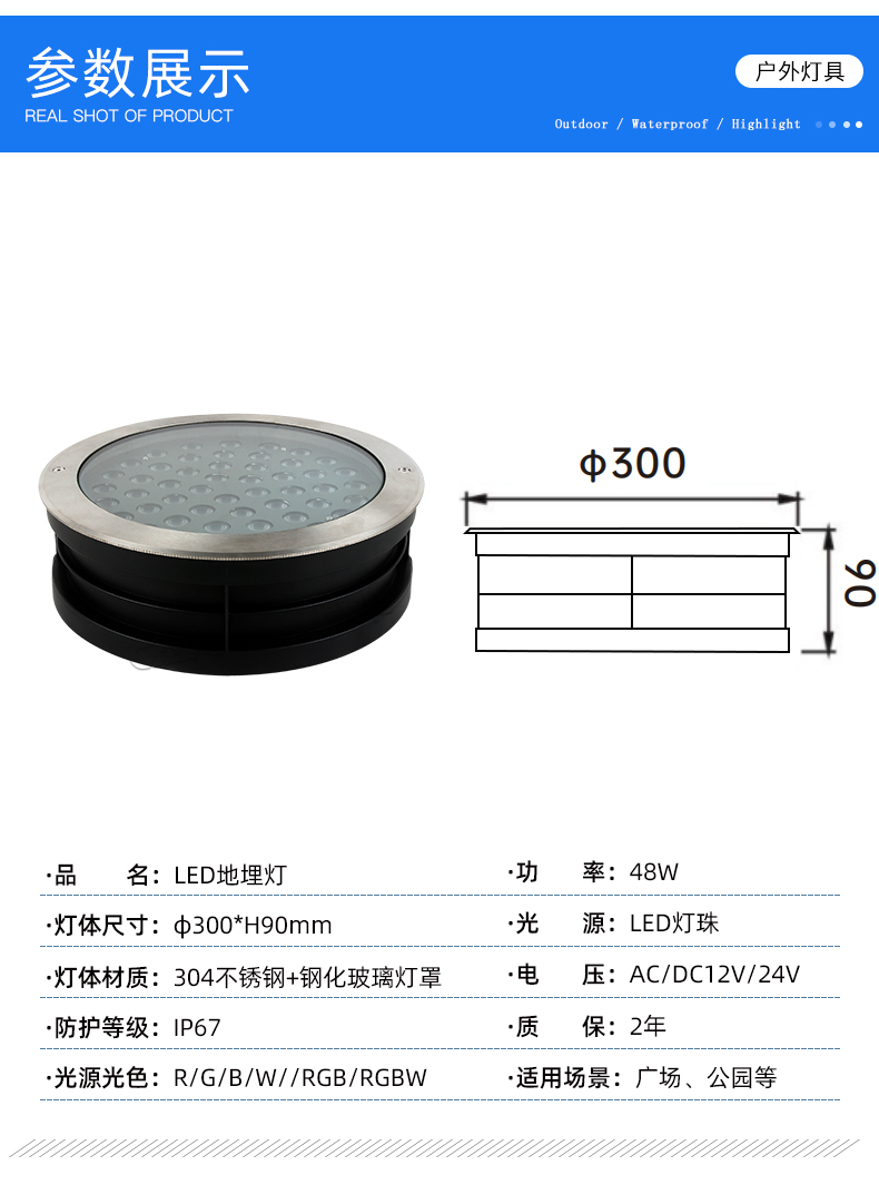 璨华36w48w地埋灯户外大功率埋地射灯公园广场埋地灯