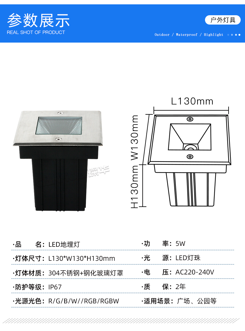 璨华方形COB地埋灯3W5W户外防水公园广场嵌入式埋地灯