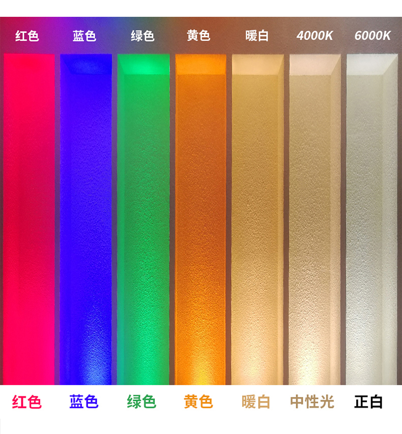 • 发光颜色 正白、暖白、红、黄、蓝、绿、七彩、单色、红绿蓝(RGB)、红绿蓝白(RGBW)