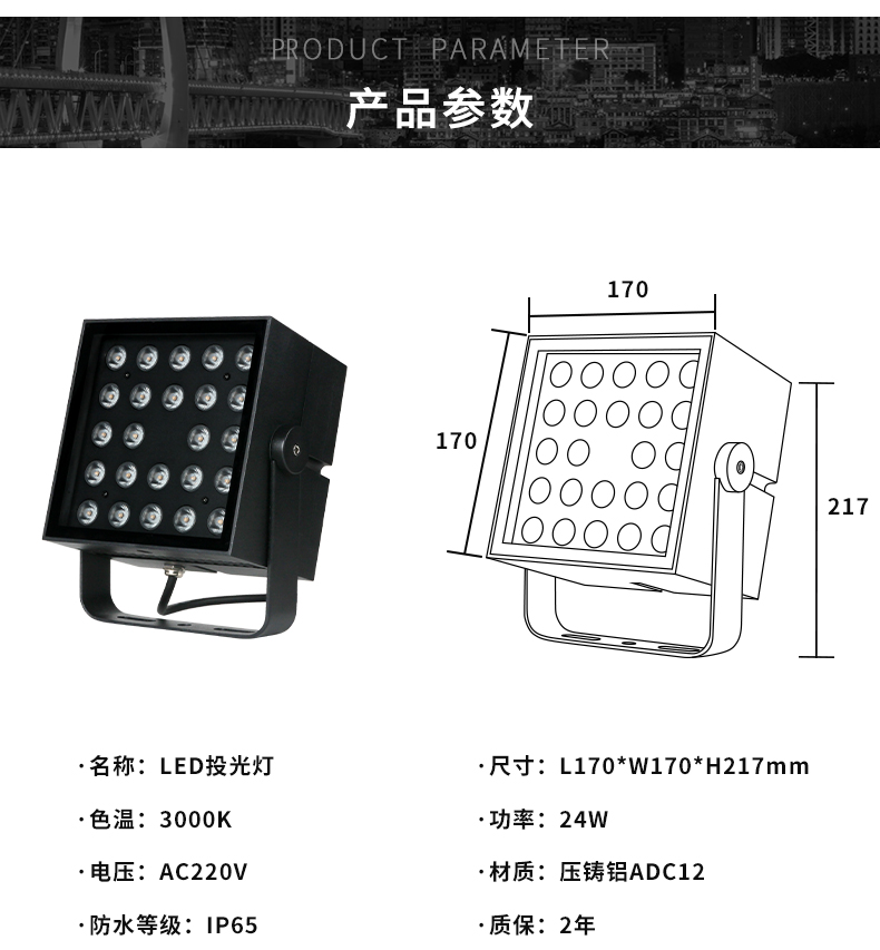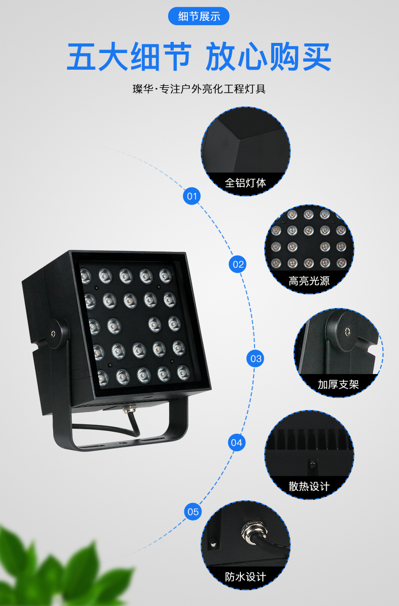 璨华方形大功率投光灯24W/36W户外酒店大楼别墅投射灯