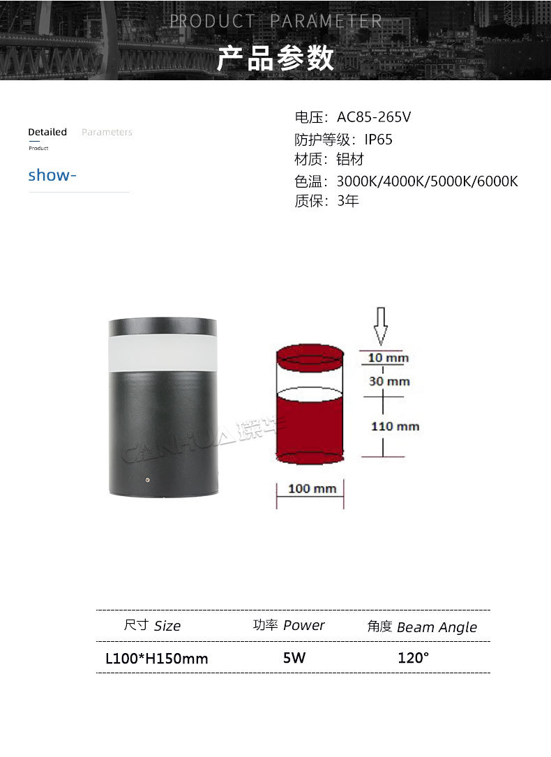 • 灯具材质 压铸铝