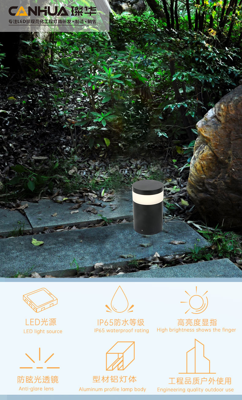璨华现代简约矮款led草坪灯5W民宿小区别墅公园景区草地灯