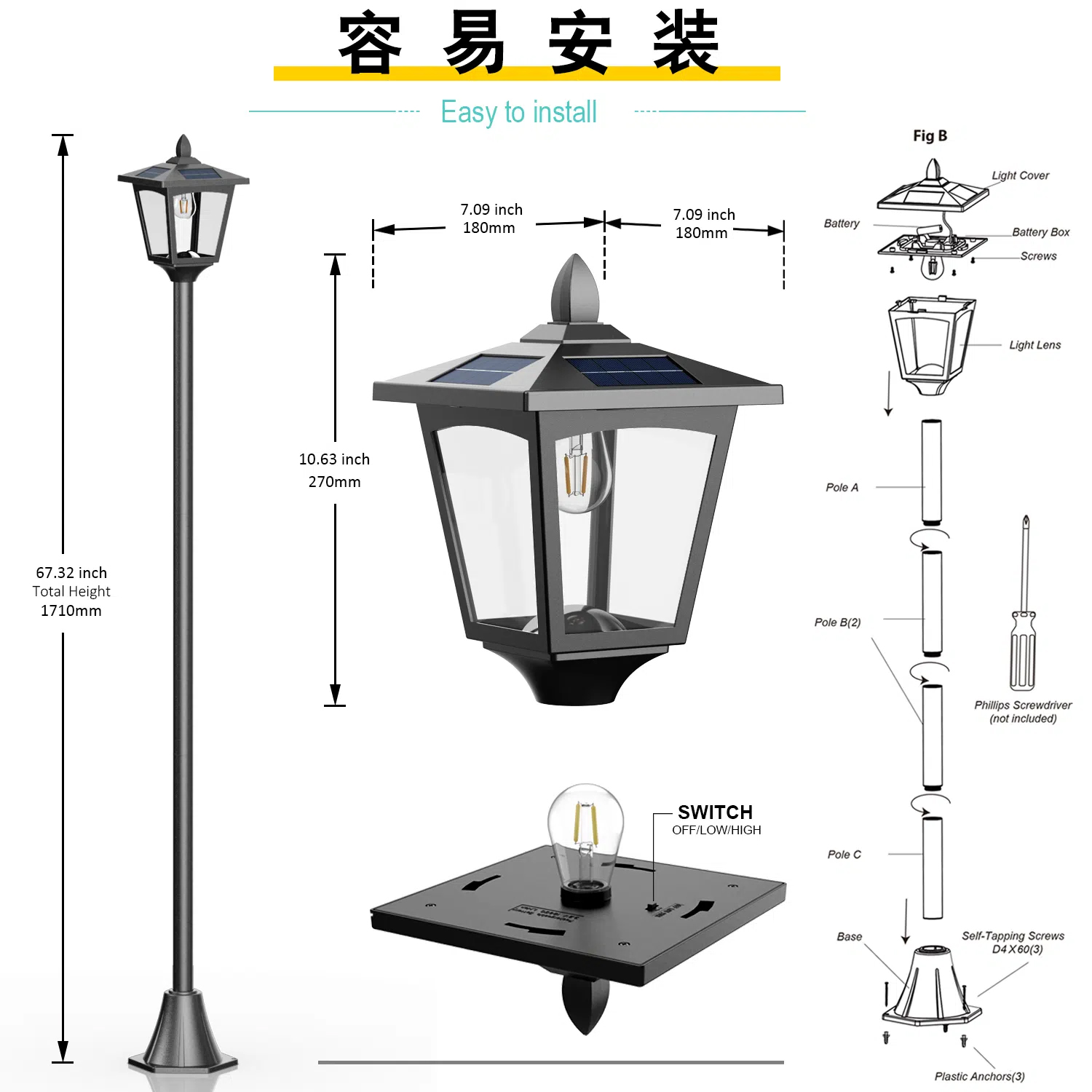 1.8米太阳能庭院灯花园景观灯 别墅花园LED高杆灯