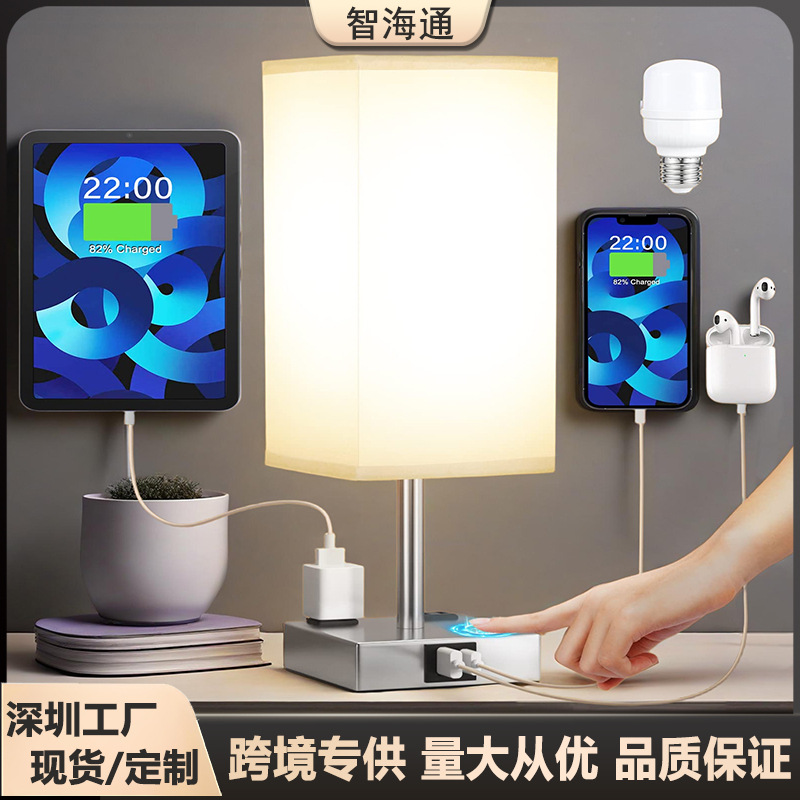 装饰台灯床头高级感卧室带充电插坐布艺台灯拉链开关氛围台灯
