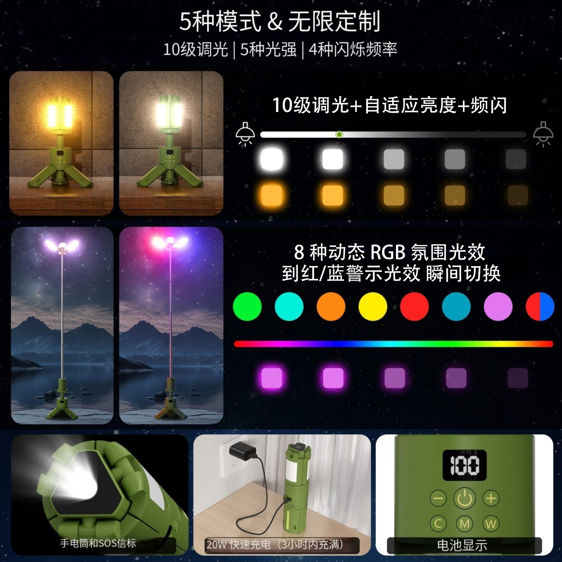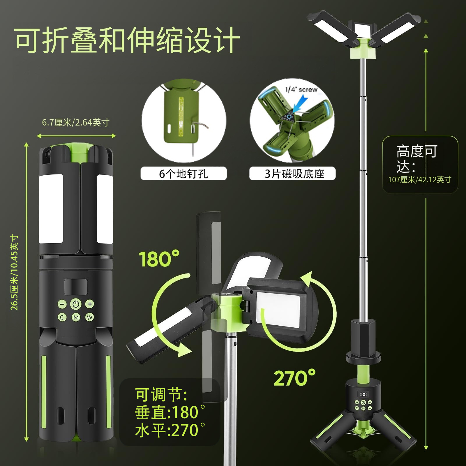 跨境爆款便携式户外野营灯多功能伸缩露营灯充电长续航防水帐篷灯