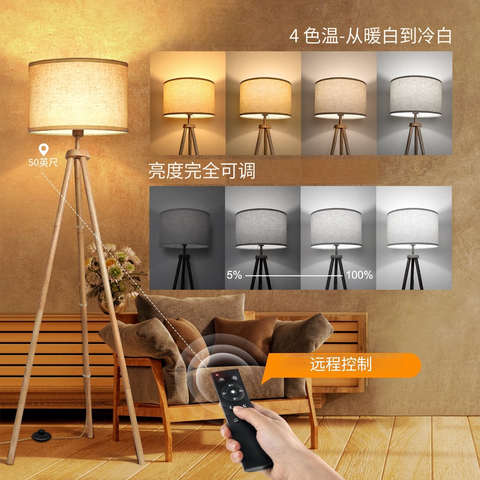 led落地灯客厅高级感卧室布罩立式台灯木制三脚架落地氛围灯