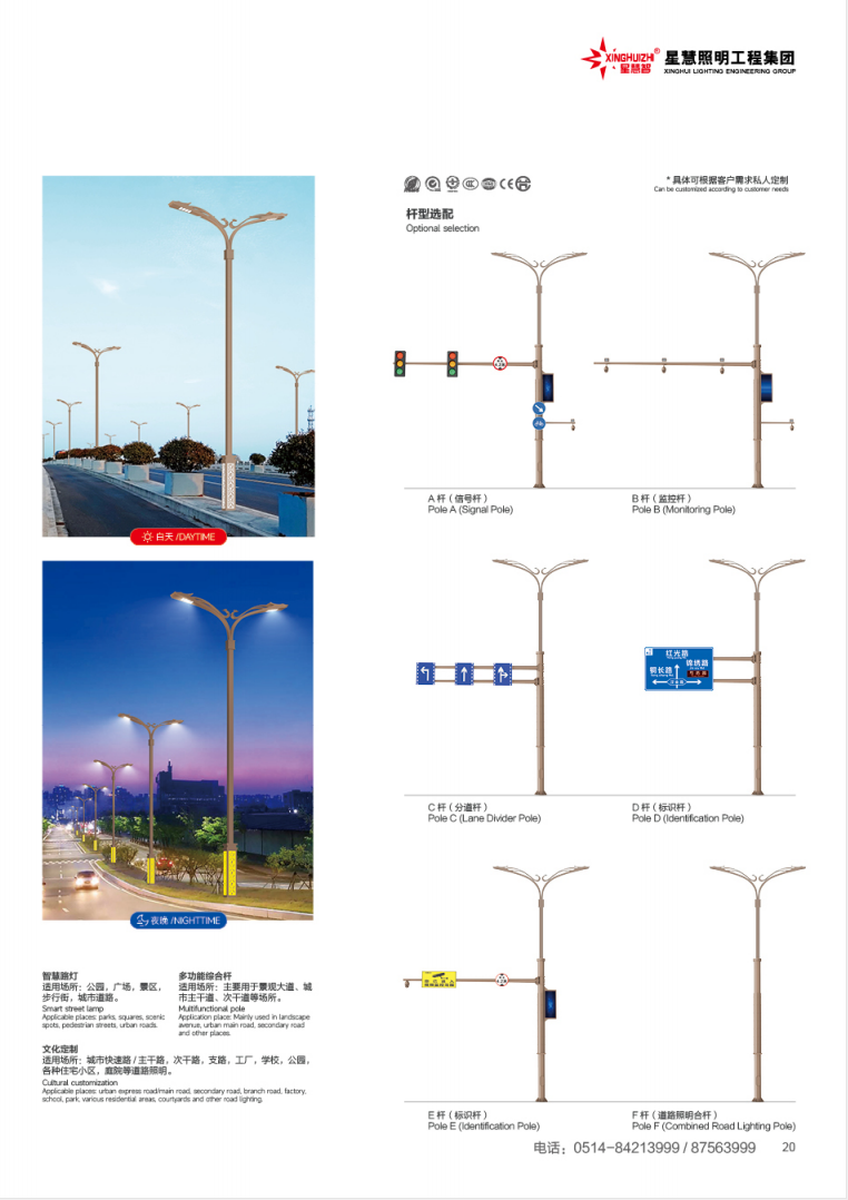 星慧照明工程集团有限公司(扬州市星慧照明有限公司)座落于中国路灯制造基地:江苏扬州高邮市送桥镇,公司创建于1999年,注册资金10058万元,厂区占地85146平方米(三大生产厂区),建筑面积38000平方米, 拥有“城市及道路照明工程专业承包”一级资质证书、“照明工程专项设计”乙级资质、“建筑智能化专业承包”三级资质、“机电设备安装专业承包”三级资质。 本公司已连续多年被江苏省扬州市工商局评为“重合同、守信用”企业、被质量技术监督局评为“质量信得过企业”,被江苏远东国际评估咨询有限公司评为“AAA”级资信企业,并且已经通过ISO9001:2008质量体系认证及“CCC”及“CQC”国家强制性产品认证。 本公司主要生产室外道路、广场、车站、码头、庭院灯、立交桥照明产品,品种有:路灯、高杆灯、LED灯具、单臂灯、双臂灯、组合灯、交通信号灯、电力杆、指示牌、龙门架、不锈钢景观灯、庭院灯、草坪灯等。2006年公司新征厂地40多亩,先后投入技改资金1600多万元,使我公司拥有专用生产设备150多台套,其中大型折弯设备两台套,可生产长达16m圆锥型杆和多棱型杆,自动化的喷塑设备一套,满足各种钢杆的表面高级聚脂涂装。为了拓宽市场,实现绿色照明,星慧照明于2007年成立太阳能LED系列化产品照明流水线。我公司生产的电力钢杆已经销往国外,并且继续不断拓展国外市场。我公司产品顺利通过国际权威检测机构SGS检测,产品出口苏丹、菲律宾、老挝、越南、坦桑尼亚、迪拜等国家。公司2012年销售额达2.4亿元人民币,已连续3年增幅40%以上,并且2012年再次新增厂区60余亩,组建江苏星扬照明科技有限公司,注册资金7000万元。 “质量第一、信誉第一、用户至上”是星慧公司的宗旨,星慧人以“只有想不到、没有做不到、想到必做到、做到不骄傲”的企业精神为用户提供一流的产品,一流的服务。全体星慧人为大家的 星慧梦 孜孜追求,不断进取:有路 有灯 有星慧!愿我们的合作更广泛,友谊更持久,我们热忱欢迎您的加盟合作,为中国的城乡亮化事业增光添彩,实现我们共同的中国梦!