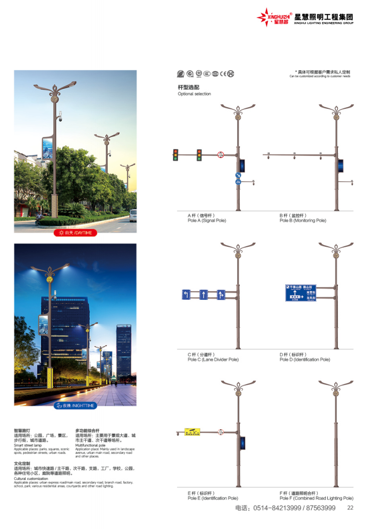 星慧照明工程集团有限公司(扬州市星慧照明有限公司)座落于中国路灯制造基地:江苏扬州高邮市送桥镇,公司创建于1999年,注册资金10058万元,厂区占地85146平方米(三大生产厂区),建筑面积38000平方米, 拥有“城市及道路照明工程专业承包”一级资质证书、“照明工程专项设计”乙级资质、“建筑智能化专业承包”三级资质、“机电设备安装专业承包”三级资质。 本公司已连续多年被江苏省扬州市工商局评为“重合同、守信用”企业、被质量技术监督局评为“质量信得过企业”,被江苏远东国际评估咨询有限公司评为“AAA”级资信企业,并且已经通过ISO9001:2008质量体系认证及“CCC”及“CQC”国家强制性产品认证。 本公司主要生产室外道路、广场、车站、码头、庭院灯、立交桥照明产品,品种有:路灯、高杆灯、LED灯具、单臂灯、双臂灯、组合灯、交通信号灯、电力杆、指示牌、龙门架、不锈钢景观灯、庭院灯、草坪灯等。2006年公司新征厂地40多亩,先后投入技改资金1600多万元,使我公司拥有专用生产设备150多台套,其中大型折弯设备两台套,可生产长达16m圆锥型杆和多棱型杆,自动化的喷塑设备一套,满足各种钢杆的表面高级聚脂涂装。为了拓宽市场,实现绿色照明,星慧照明于2007年成立太阳能LED系列化产品照明流水线。我公司生产的电力钢杆已经销往国外,并且继续不断拓展国外市场。我公司产品顺利通过国际权威检测机构SGS检测,产品出口苏丹、菲律宾、老挝、越南、坦桑尼亚、迪拜等国家。公司2012年销售额达2.4亿元人民币,已连续3年增幅40%以上,并且2012年再次新增厂区60余亩,组建江苏星扬照明科技有限公司,注册资金7000万元。 “质量第一、信誉第一、用户至上”是星慧公司的宗旨,星慧人以“只有想不到、没有做不到、想到必做到、做到不骄傲”的企业精神为用户提供一流的产品,一流的服务。全体星慧人为大家的 星慧梦 孜孜追求,不断进取:有路 有灯 有星慧!愿我们的合作更广泛,友谊更持久,我们热忱欢迎您的加盟合作,为中国的城乡亮化事业增光添彩,实现我们共同的中国梦!