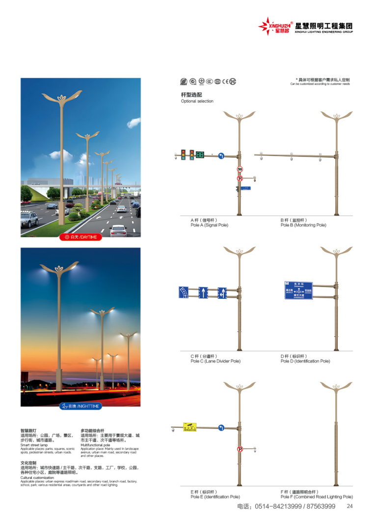 星慧照明工程集团有限公司(扬州市星慧照明有限公司)座落于中国路灯制造基地:江苏扬州高邮市送桥镇,公司创建于1999年,注册资金10058万元,厂区占地85146平方米(三大生产厂区),建筑面积38000平方米, 拥有“城市及道路照明工程专业承包”一级资质证书、“照明工程专项设计”乙级资质、“建筑智能化专业承包”三级资质、“机电设备安装专业承包”三级资质。 本公司已连续多年被江苏省扬州市工商局评为“重合同、守信用”企业、被质量技术监督局评为“质量信得过企业”,被江苏远东国际评估咨询有限公司评为“AAA”级资信企业,并且已经通过ISO9001:2008质量体系认证及“CCC”及“CQC”国家强制性产品认证。 本公司主要生产室外道路、广场、车站、码头、庭院灯、立交桥照明产品,品种有:路灯、高杆灯、LED灯具、单臂灯、双臂灯、组合灯、交通信号灯、电力杆、指示牌、龙门架、不锈钢景观灯、庭院灯、草坪灯等。2006年公司新征厂地40多亩,先后投入技改资金1600多万元,使我公司拥有专用生产设备150多台套,其中大型折弯设备两台套,可生产长达16m圆锥型杆和多棱型杆,自动化的喷塑设备一套,满足各种钢杆的表面高级聚脂涂装。为了拓宽市场,实现绿色照明,星慧照明于2007年成立太阳能LED系列化产品照明流水线。我公司生产的电力钢杆已经销往国外,并且继续不断拓展国外市场。我公司产品顺利通过国际权威检测机构SGS检测,产品出口苏丹、菲律宾、老挝、越南、坦桑尼亚、迪拜等国家。公司2012年销售额达2.4亿元人民币,已连续3年增幅40%以上,并且2012年再次新增厂区60余亩,组建江苏星扬照明科技有限公司,注册资金7000万元。 “质量第一、信誉第一、用户至上”是星慧公司的宗旨,星慧人以“只有想不到、没有做不到、想到必做到、做到不骄傲”的企业精神为用户提供一流的产品,一流的服务。全体星慧人为大家的 星慧梦 孜孜追求,不断进取:有路 有灯 有星慧!愿我们的合作更广泛,友谊更持久,我们热忱欢迎您的加盟合作,为中国的城乡亮化事业增光添彩,实现我们共同的中国梦!