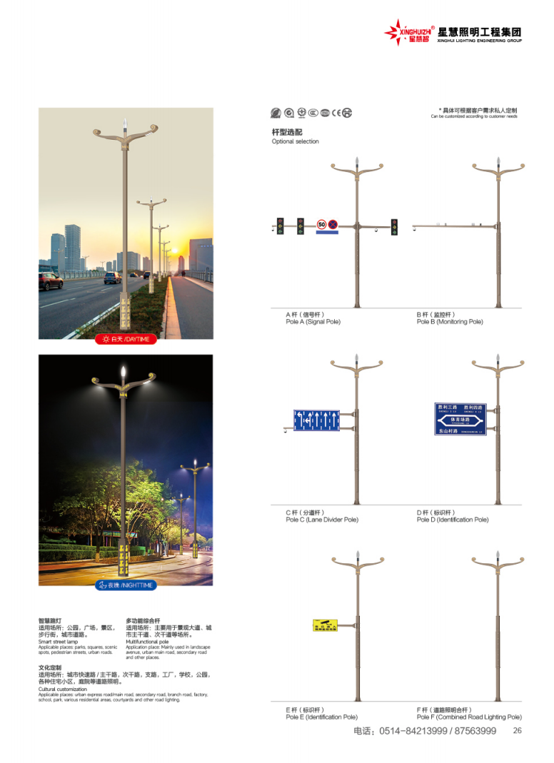 星慧照明工程集团有限公司(扬州市星慧照明有限公司)座落于中国路灯制造基地:江苏扬州高邮市送桥镇,公司创建于1999年,注册资金10058万元,厂区占地85146平方米(三大生产厂区),建筑面积38000平方米, 拥有“城市及道路照明工程专业承包”一级资质证书、“照明工程专项设计”乙级资质、“建筑智能化专业承包”三级资质、“机电设备安装专业承包”三级资质。 本公司已连续多年被江苏省扬州市工商局评为“重合同、守信用”企业、被质量技术监督局评为“质量信得过企业”,被江苏远东国际评估咨询有限公司评为“AAA”级资信企业,并且已经通过ISO9001:2008质量体系认证及“CCC”及“CQC”国家强制性产品认证。 本公司主要生产室外道路、广场、车站、码头、庭院灯、立交桥照明产品,品种有:路灯、高杆灯、LED灯具、单臂灯、双臂灯、组合灯、交通信号灯、电力杆、指示牌、龙门架、不锈钢景观灯、庭院灯、草坪灯等。2006年公司新征厂地40多亩,先后投入技改资金1600多万元,使我公司拥有专用生产设备150多台套,其中大型折弯设备两台套,可生产长达16m圆锥型杆和多棱型杆,自动化的喷塑设备一套,满足各种钢杆的表面高级聚脂涂装。为了拓宽市场,实现绿色照明,星慧照明于2007年成立太阳能LED系列化产品照明流水线。我公司生产的电力钢杆已经销往国外,并且继续不断拓展国外市场。我公司产品顺利通过国际权威检测机构SGS检测,产品出口苏丹、菲律宾、老挝、越南、坦桑尼亚、迪拜等国家。公司2012年销售额达2.4亿元人民币,已连续3年增幅40%以上,并且2012年再次新增厂区60余亩,组建江苏星扬照明科技有限公司,注册资金7000万元。 “质量第一、信誉第一、用户至上”是星慧公司的宗旨,星慧人以“只有想不到、没有做不到、想到必做到、做到不骄傲”的企业精神为用户提供一流的产品,一流的服务。全体星慧人为大家的 星慧梦 孜孜追求,不断进取:有路 有灯 有星慧!愿我们的合作更广泛,友谊更持久,我们热忱欢迎您的加盟合作,为中国的城乡亮化事业增光添彩,实现我们共同的中国梦!