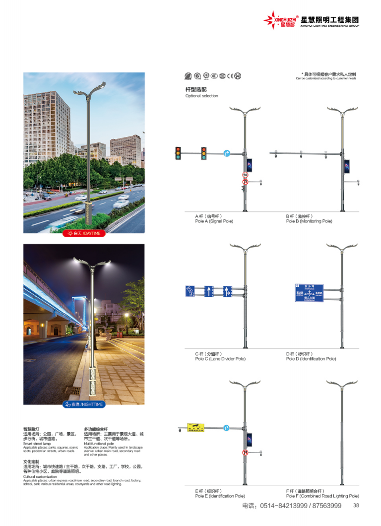 星慧照明工程集团有限公司(扬州市星慧照明有限公司)座落于中国路灯制造基地:江苏扬州高邮市送桥镇,公司创建于1999年,注册资金10058万元,厂区占地85146平方米(三大生产厂区),建筑面积38000平方米, 拥有“城市及道路照明工程专业承包”一级资质证书、“照明工程专项设计”乙级资质、“建筑智能化专业承包”三级资质、“机电设备安装专业承包”三级资质。 本公司已连续多年被江苏省扬州市工商局评为“重合同、守信用”企业、被质量技术监督局评为“质量信得过企业”,被江苏远东国际评估咨询有限公司评为“AAA”级资信企业,并且已经通过ISO9001:2008质量体系认证及“CCC”及“CQC”国家强制性产品认证。 本公司主要生产室外道路、广场、车站、码头、庭院灯、立交桥照明产品,品种有:路灯、高杆灯、LED灯具、单臂灯、双臂灯、组合灯、交通信号灯、电力杆、指示牌、龙门架、不锈钢景观灯、庭院灯、草坪灯等。2006年公司新征厂地40多亩,先后投入技改资金1600多万元,使我公司拥有专用生产设备150多台套,其中大型折弯设备两台套,可生产长达16m圆锥型杆和多棱型杆,自动化的喷塑设备一套,满足各种钢杆的表面高级聚脂涂装。为了拓宽市场,实现绿色照明,星慧照明于2007年成立太阳能LED系列化产品照明流水线。我公司生产的电力钢杆已经销往国外,并且继续不断拓展国外市场。我公司产品顺利通过国际权威检测机构SGS检测,产品出口苏丹、菲律宾、老挝、越南、坦桑尼亚、迪拜等国家。公司2012年销售额达2.4亿元人民币,已连续3年增幅40%以上,并且2012年再次新增厂区60余亩,组建江苏星扬照明科技有限公司,注册资金7000万元。 “质量第一、信誉第一、用户至上”是星慧公司的宗旨,星慧人以“只有想不到、没有做不到、想到必做到、做到不骄傲”的企业精神为用户提供一流的产品,一流的服务。全体星慧人为大家的 星慧梦 孜孜追求,不断进取:有路 有灯 有星慧!愿我们的合作更广泛,友谊更持久,我们热忱欢迎您的加盟合作,为中国的城乡亮化事业增光添彩,实现我们共同的中国梦!