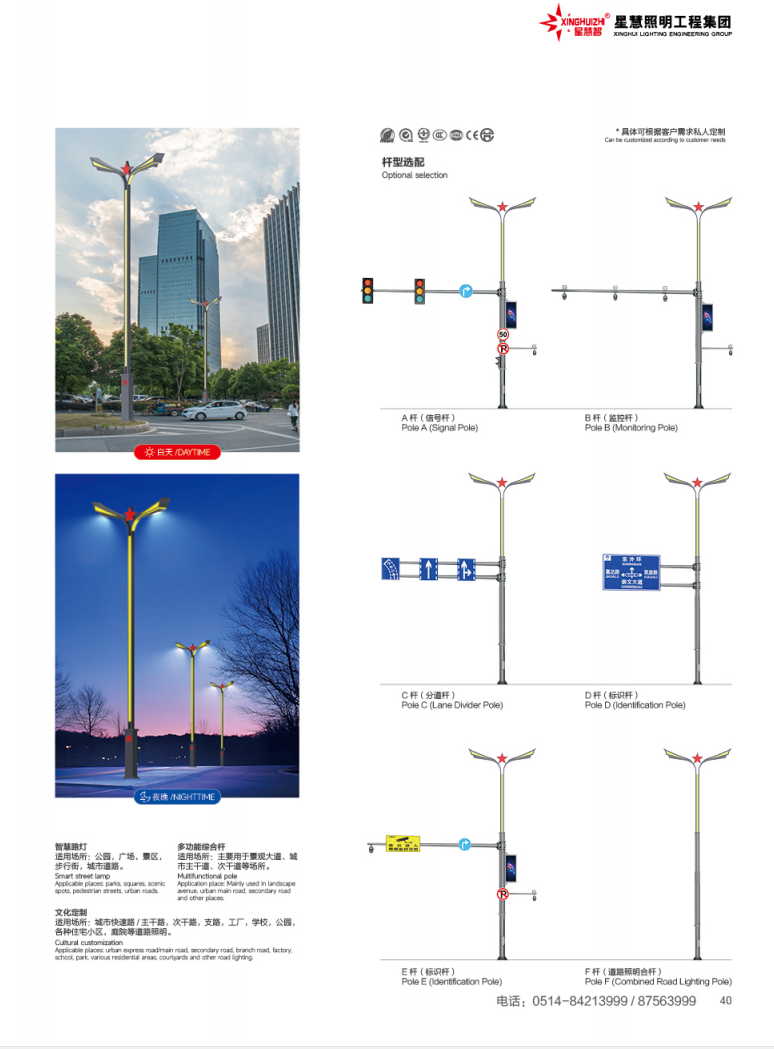 星慧照明工程集团有限公司(扬州市星慧照明有限公司)座落于中国路灯制造基地:江苏扬州高邮市送桥镇,公司创建于1999年,注册资金10058万元,厂区占地85146平方米(三大生产厂区),建筑面积38000平方米, 拥有“城市及道路照明工程专业承包”一级资质证书、“照明工程专项设计”乙级资质、“建筑智能化专业承包”三级资质、“机电设备安装专业承包”三级资质。 本公司已连续多年被江苏省扬州市工商局评为“重合同、守信用”企业、被质量技术监督局评为“质量信得过企业”,被江苏远东国际评估咨询有限公司评为“AAA”级资信企业,并且已经通过ISO9001:2008质量体系认证及“CCC”及“CQC”国家强制性产品认证。 本公司主要生产室外道路、广场、车站、码头、庭院灯、立交桥照明产品,品种有:路灯、高杆灯、LED灯具、单臂灯、双臂灯、组合灯、交通信号灯、电力杆、指示牌、龙门架、不锈钢景观灯、庭院灯、草坪灯等。2006年公司新征厂地40多亩,先后投入技改资金1600多万元,使我公司拥有专用生产设备150多台套,其中大型折弯设备两台套,可生产长达16m圆锥型杆和多棱型杆,自动化的喷塑设备一套,满足各种钢杆的表面高级聚脂涂装。为了拓宽市场,实现绿色照明,星慧照明于2007年成立太阳能LED系列化产品照明流水线。我公司生产的电力钢杆已经销往国外,并且继续不断拓展国外市场。我公司产品顺利通过国际权威检测机构SGS检测,产品出口苏丹、菲律宾、老挝、越南、坦桑尼亚、迪拜等国家。公司2012年销售额达2.4亿元人民币,已连续3年增幅40%以上,并且2012年再次新增厂区60余亩,组建江苏星扬照明科技有限公司,注册资金7000万元。 “质量第一、信誉第一、用户至上”是星慧公司的宗旨,星慧人以“只有想不到、没有做不到、想到必做到、做到不骄傲”的企业精神为用户提供一流的产品,一流的服务。全体星慧人为大家的 星慧梦 孜孜追求,不断进取:有路 有灯 有星慧!愿我们的合作更广泛,友谊更持久,我们热忱欢迎您的加盟合作,为中国的城乡亮化事业增光添彩,实现我们共同的中国梦!