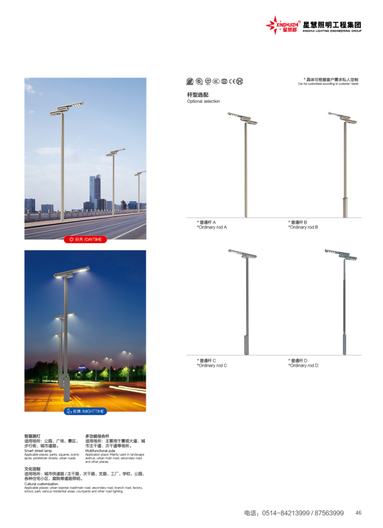 星慧照明工程集团有限公司(扬州市星慧照明有限公司)座落于中国路灯制造基地:江苏扬州高邮市送桥镇,公司创建于1999年,注册资金10058万元,厂区占地85146平方米(三大生产厂区),建筑面积38000平方米, 拥有“城市及道路照明工程专业承包”一级资质证书、“照明工程专项设计”乙级资质、“建筑智能化专业承包”三级资质、“机电设备安装专业承包”三级资质。 本公司已连续多年被江苏省扬州市工商局评为“重合同、守信用”企业、被质量技术监督局评为“质量信得过企业”,被江苏远东国际评估咨询有限公司评为“AAA”级资信企业,并且已经通过ISO9001:2008质量体系认证及“CCC”及“CQC”国家强制性产品认证。 本公司主要生产室外道路、广场、车站、码头、庭院灯、立交桥照明产品,品种有:路灯、高杆灯、LED灯具、单臂灯、双臂灯、组合灯、交通信号灯、电力杆、指示牌、龙门架、不锈钢景观灯、庭院灯、草坪灯等。2006年公司新征厂地40多亩,先后投入技改资金1600多万元,使我公司拥有专用生产设备150多台套,其中大型折弯设备两台套,可生产长达16m圆锥型杆和多棱型杆,自动化的喷塑设备一套,满足各种钢杆的表面高级聚脂涂装。为了拓宽市场,实现绿色照明,星慧照明于2007年成立太阳能LED系列化产品照明流水线。我公司生产的电力钢杆已经销往国外,并且继续不断拓展国外市场。我公司产品顺利通过国际权威检测机构SGS检测,产品出口苏丹、菲律宾、老挝、越南、坦桑尼亚、迪拜等国家。公司2012年销售额达2.4亿元人民币,已连续3年增幅40%以上,并且2012年再次新增厂区60余亩,组建江苏星扬照明科技有限公司,注册资金7000万元。 “质量第一、信誉第一、用户至上”是星慧公司的宗旨,星慧人以“只有想不到、没有做不到、想到必做到、做到不骄傲”的企业精神为用户提供一流的产品,一流的服务。全体星慧人为大家的 星慧梦 孜孜追求,不断进取:有路 有灯 有星慧!愿我们的合作更广泛,友谊更持久,我们热忱欢迎您的加盟合作,为中国的城乡亮化事业增光添彩,实现我们共同的中国梦!
