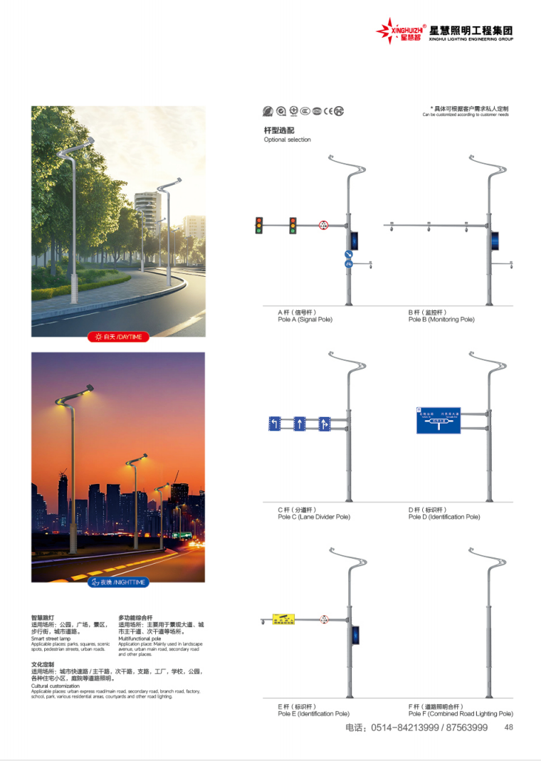 星慧照明工程集团有限公司(扬州市星慧照明有限公司)座落于中国路灯制造基地:江苏扬州高邮市送桥镇,公司创建于1999年,注册资金10058万元,厂区占地85146平方米(三大生产厂区),建筑面积38000平方米, 拥有“城市及道路照明工程专业承包”一级资质证书、“照明工程专项设计”乙级资质、“建筑智能化专业承包”三级资质、“机电设备安装专业承包”三级资质。 本公司已连续多年被江苏省扬州市工商局评为“重合同、守信用”企业、被质量技术监督局评为“质量信得过企业”,被江苏远东国际评估咨询有限公司评为“AAA”级资信企业,并且已经通过ISO9001:2008质量体系认证及“CCC”及“CQC”国家强制性产品认证。 本公司主要生产室外道路、广场、车站、码头、庭院灯、立交桥照明产品,品种有:路灯、高杆灯、LED灯具、单臂灯、双臂灯、组合灯、交通信号灯、电力杆、指示牌、龙门架、不锈钢景观灯、庭院灯、草坪灯等。2006年公司新征厂地40多亩,先后投入技改资金1600多万元,使我公司拥有专用生产设备150多台套,其中大型折弯设备两台套,可生产长达16m圆锥型杆和多棱型杆,自动化的喷塑设备一套,满足各种钢杆的表面高级聚脂涂装。为了拓宽市场,实现绿色照明,星慧照明于2007年成立太阳能LED系列化产品照明流水线。我公司生产的电力钢杆已经销往国外,并且继续不断拓展国外市场。我公司产品顺利通过国际权威检测机构SGS检测,产品出口苏丹、菲律宾、老挝、越南、坦桑尼亚、迪拜等国家。公司2012年销售额达2.4亿元人民币,已连续3年增幅40%以上,并且2012年再次新增厂区60余亩,组建江苏星扬照明科技有限公司,注册资金7000万元。 “质量第一、信誉第一、用户至上”是星慧公司的宗旨,星慧人以“只有想不到、没有做不到、想到必做到、做到不骄傲”的企业精神为用户提供一流的产品,一流的服务。全体星慧人为大家的 星慧梦 孜孜追求,不断进取:有路 有灯 有星慧!愿我们的合作更广泛,友谊更持久,我们热忱欢迎您的加盟合作,为中国的城乡亮化事业增光添彩,实现我们共同的中国梦!