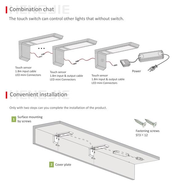 HJ-LED-024: 不带触摸开关;提供输入电源线各1.8米;带LED迷你接插头