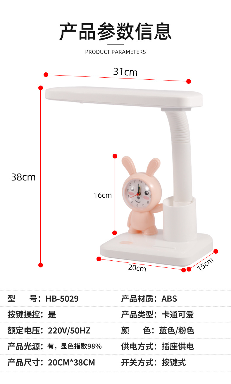 跨境定制台灯学习专业大学生护眼led台灯卡通兔子台灯阅读台灯