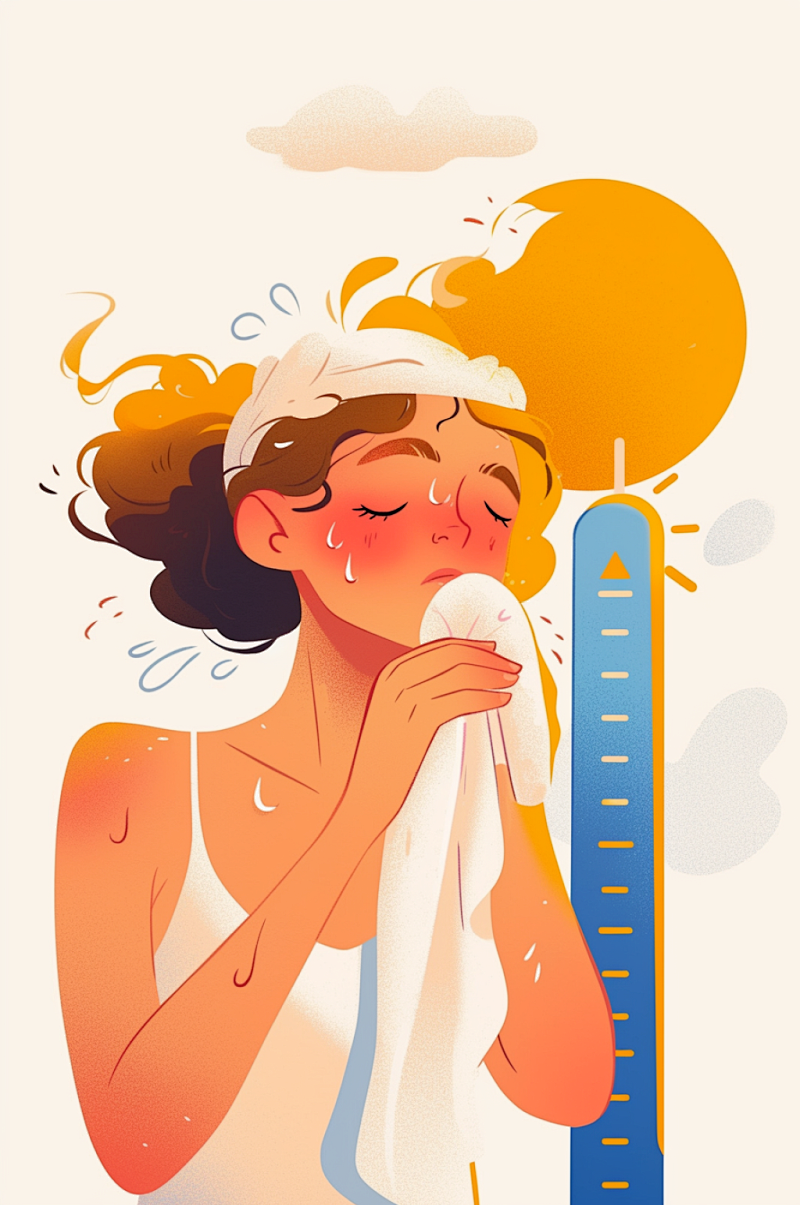 空调设定 26-28℃,搭配电风扇增强空气流通;午休时使用湿毛巾擦拭颈部、腋窝等大血管处,或在额头贴降温贴,快速降低体表温度。
