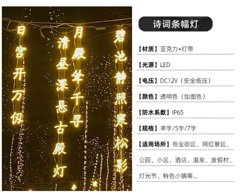 创意发光诗词条灯串不夜城景区公园街道树木亮化挂树景观灯